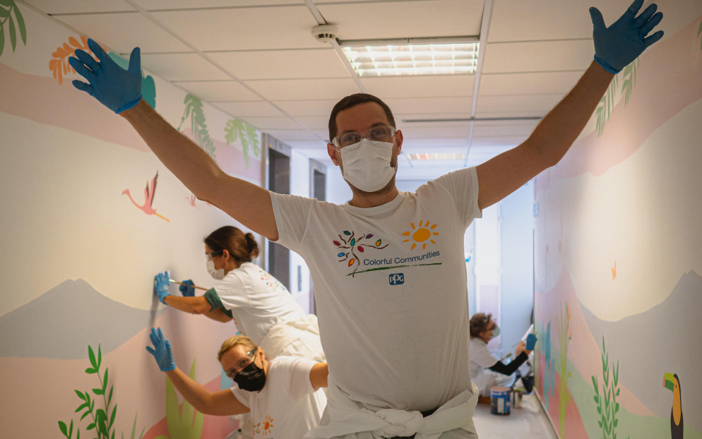 Ils seront accompagnés par des artistes qui mettront tout leur talent à embellir les murs des services avec des fresques propices à l’évasion. Ces décors seront réalisés avec l’aide des salariés bénévoles PPG, dans un grand esprit de solidarité.