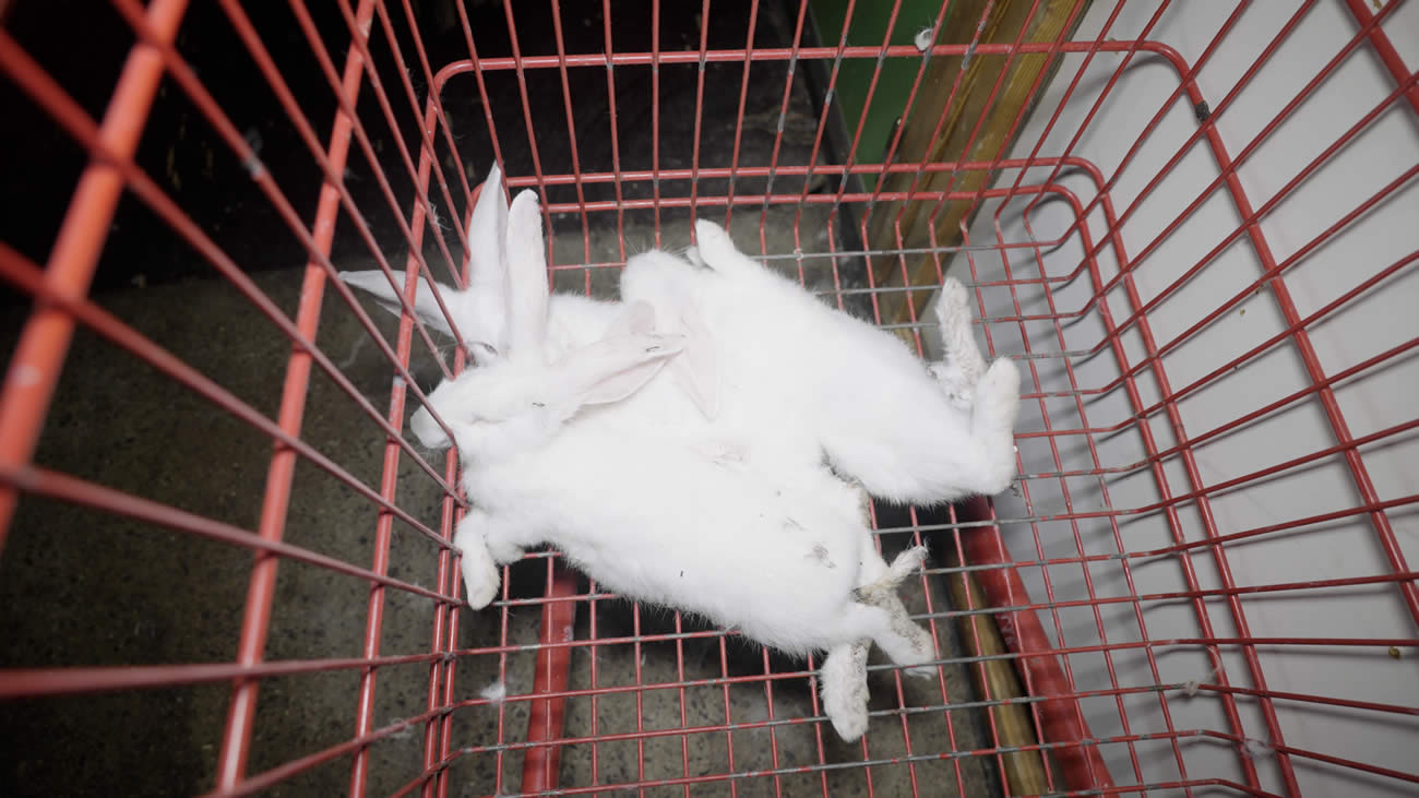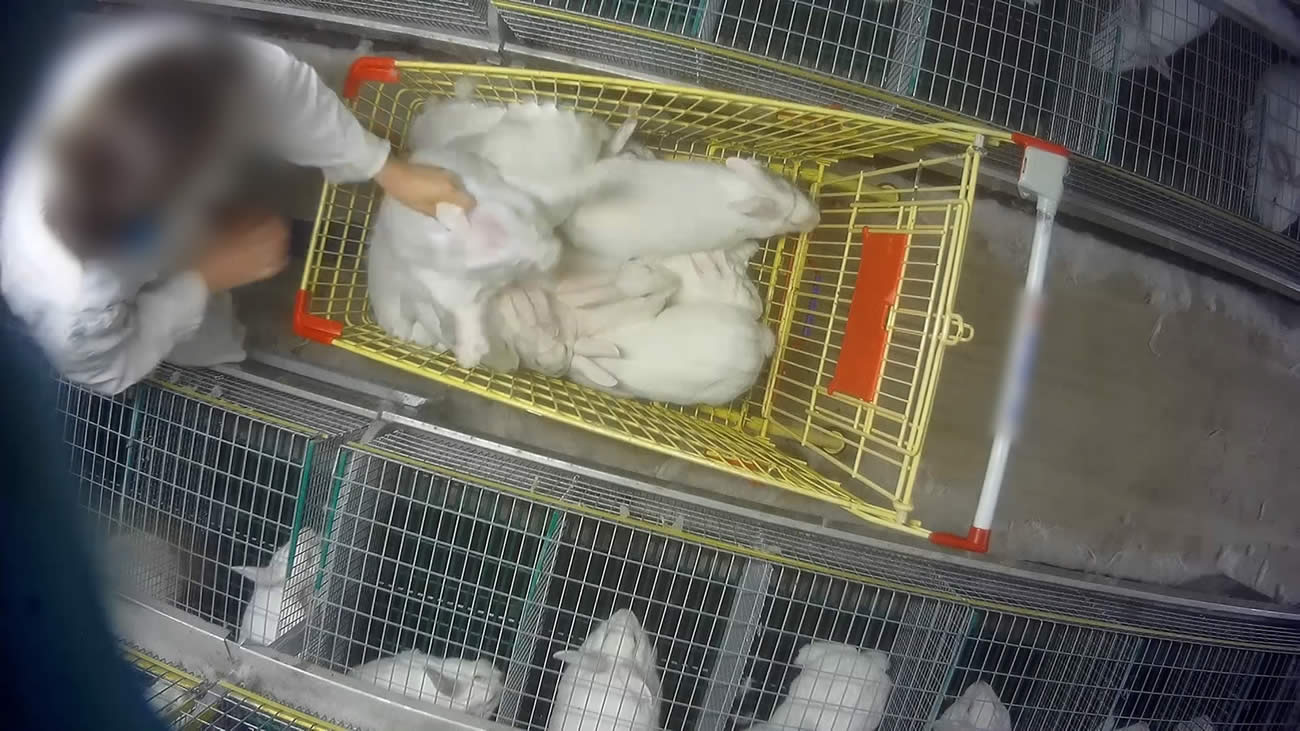 Nouvelle enquête de L214 dans un élevage de lapins situé en Bretagne dans les Côtes-d’Armor à Langoat. Les images montrent des lapereaux vivants à la poubelle, des nouveau-nés à l’agonie, des lapins entassés dans des caddies de supermarchés, des antibiotiques en excès.