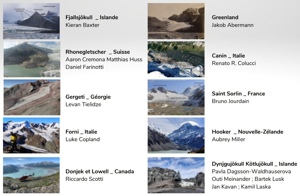Pour sélectionner ces dix projets, les membres du jury se sont appuyés sur trois critères : leur intérêt scientifique, la dimension emblématique du site proposé, ainsi que la faisabilité technique du projet. C’est ainsi que le jury, composé d’Antoine Auberton (CEO d’Enlaps), d’Heidi Sevestre, de Luc Moreau (glaciologue associé au laboratoire Edytem CNRS), de Yann Arthus-Bertrand (Président de la Fondation Good Planet), et de Sophie Szopa (directrice de recherche au laboratoire climat et environnement, auteure du rapport du groupe 1 du GIEC), s’est accordé sur le fait de retenir les projets suivants (liste non exhaustive) : le glacier Saint Sorlin en France, le Hooker en Nouvelle-Zélande ou encore Fjallsjöskull en Islande.
