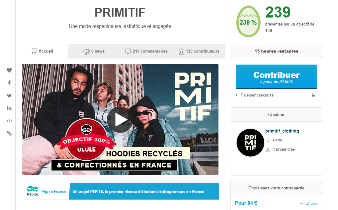 Celle-ci, qui n’en est qu’à ses prémisses, fabrique notamment un hoodie à partir de matières 100% recyclées. Ce dernier est d’ailleurs disponible en pré-commande sur la plateforme Ulule.